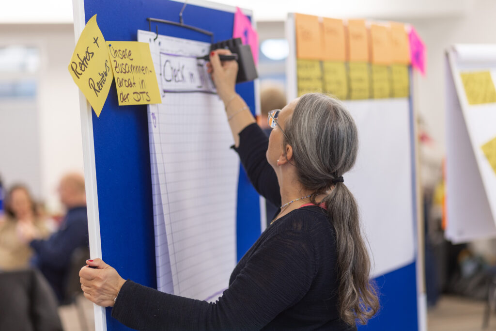 Großen Wert legen wir bei dieser Fortbildung auf die Zentrierung auf die Teilnehmer:innen sowie deren aktive Mitarbeit, durch die wir Agilität erfahrbar machen.